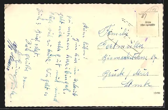 alte Ansichtskarte, gelaufen, Briefmarke entfernt, Eckknick oben re., guter Zustand