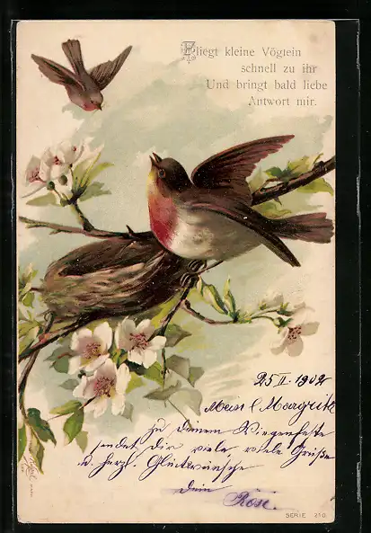 AK Vögel bauen zusammen ein Nest auf einem Ast