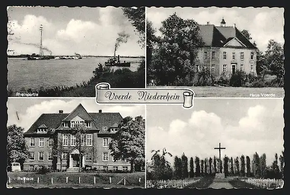 AK Voerde Niederrhein, Ortspartie, Rathaus, Rheinpartie, Ehrenfriedhof