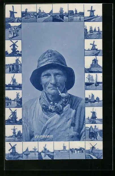 AK Volendam, wettergegerbter Fischer mit Pfeife