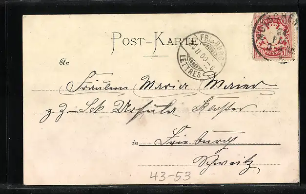 alte Ansichtskarte, gelaufen 1900, guter Zustand