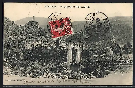 AK Volonne, Vue générale et Pont suspendu