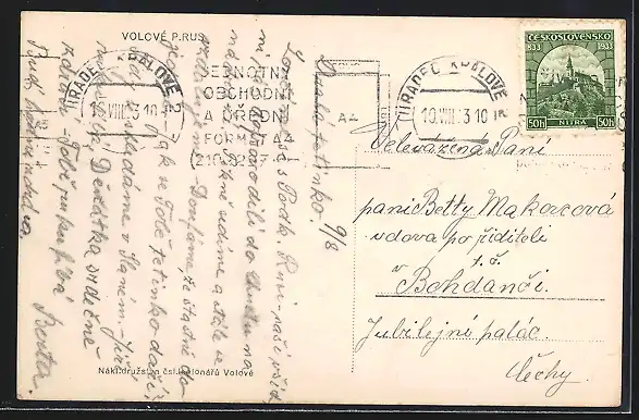 Personenbezogene Daten auf der Rückseite der Karte wurden durch blauen Textmarker unkenntlich gemacht. Die blauen Stellen sind auf die Vorderseite durchgeweicht und wirken sich negativ auf das Postkartenfoto aus