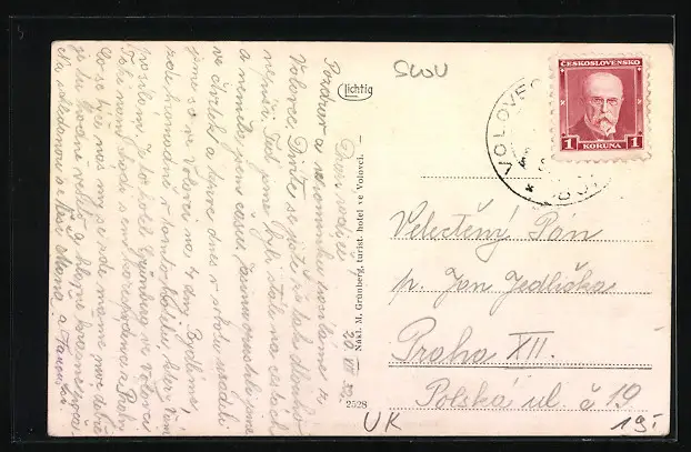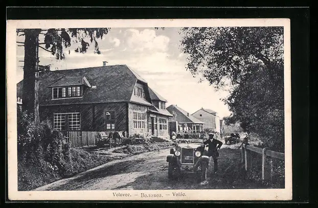 AK Volovec, Strassenpartie mit Automobil und Fahrer