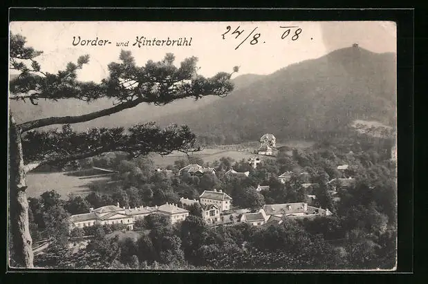 AK Vorderbrühl, Teilansicht mit Hinterbrühl und Bäumen