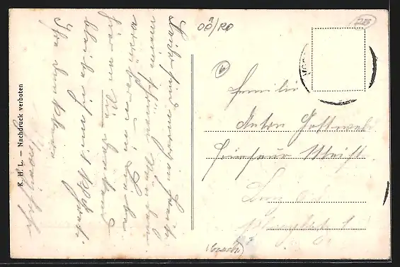 alte Ansichtskarte, gelaufen, Briefmarke entfernt, guter Zustand