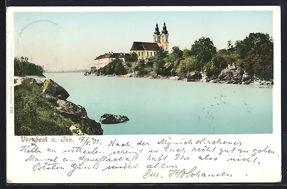AK Vornbach a. Inn, Ortspartie mit Kirche