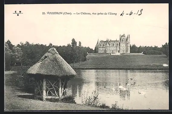AK Vouzeron, Le Château, vue prise de l`étang