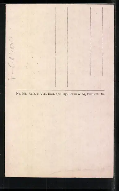 Personenbezogene Daten auf der Rückseite der Karte wurden durch blauen Textmarker unkenntlich gemacht. Die blauen Stellen sind auf die Vorderseite durchgeweicht und wirken sich negativ auf das Postkartenfoto aus