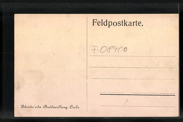 Personenbezogene Daten auf der Rückseite der Karte wurden durch blauen Textmarker unkenntlich gemacht. Die blauen Stellen sind auf die Vorderseite durchgeweicht und wirken sich negativ auf das Postkartenfoto aus