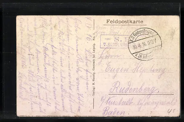 alte Ansichtskarte, gelaufen 1916 als Feldpost, guter Zustand