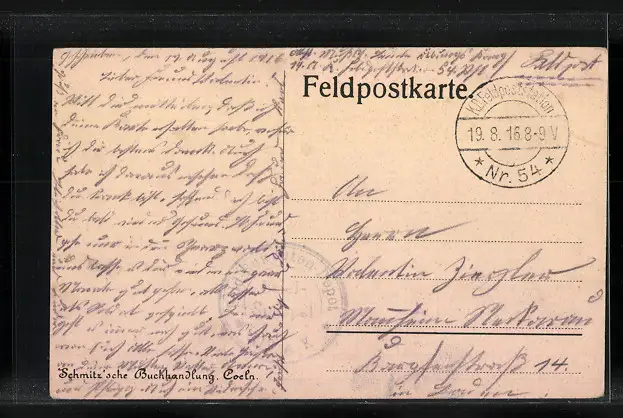 alte Ansichtskarte, gelaufen 1916 als Feldpost, Eckknick re. oben, sonst guter Zustand