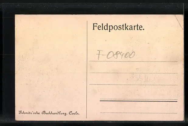 Personenbezogene Daten auf der Rückseite der Karte wurden durch blauen Textmarker unkenntlich gemacht. Die blauen Stellen sind auf die Vorderseite durchgeweicht und wirken sich negativ auf das Postkartenfoto aus