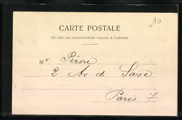 Personenbezogene Daten auf der Rückseite der Karte wurden durch blauen Textmarker unkenntlich gemacht. Die blauen Stellen sind auf die Vorderseite durchgeweicht und wirken sich negativ auf das Postkartenfoto aus