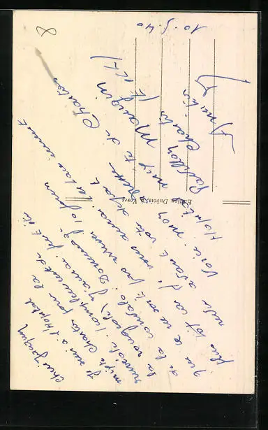 Personenbezogene Daten auf der Rückseite der Karte wurden durch blauen Textmarker unkenntlich gemacht. Die blauen Stellen sind auf die Vorderseite durchgeweicht und wirken sich negativ auf das Postkartenfoto aus