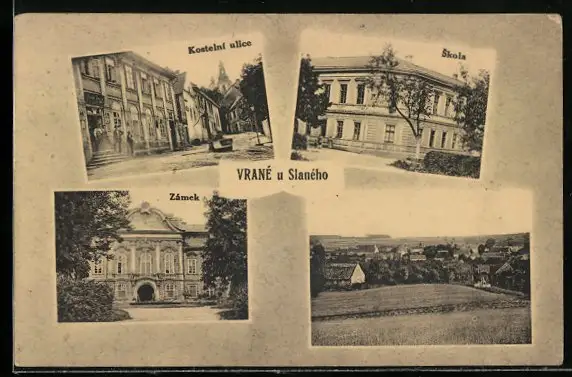 AK Vrané u Slaného, Skola, Kostelni ulice, Zámek
