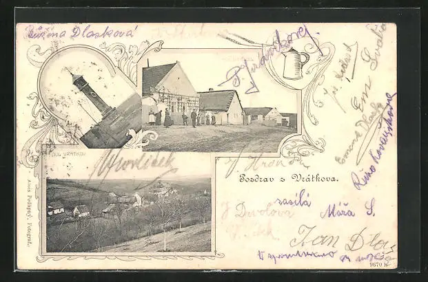 AK Vratkov, Strassenpartie mit Gebäudeansicht, Denkmal, Ortspartie