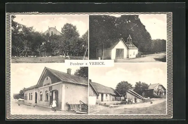 AK Vrbice, Hostinec, Gebäudeansichten, Strassenpartie