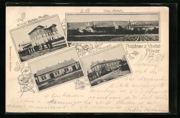 AK Vsetaty, Obchod Adolf Oplatka, Mlýn Priborech, Nádrazi Vsetaty-Privory