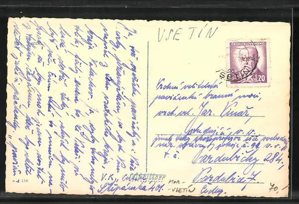 AK Vsetin, Celkovy pohled, Totalansicht mit Güterbahnhof