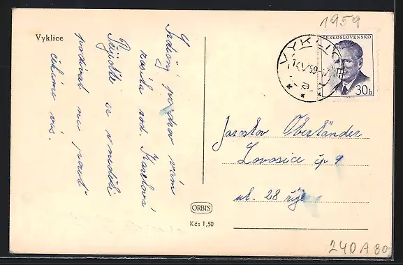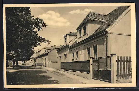 AK Vyklice, Strassenpartie mit Gebäudeansicht im Sonnenschein