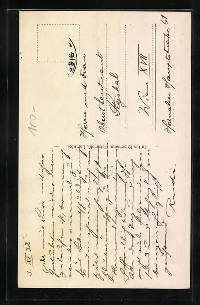 gelaufen 1932, Briefmarke entfernt, guter Zustand