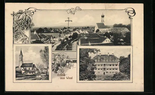 AK Waal, Teilansicht mit Strassenpartie, Kirche, Gebäudeansicht