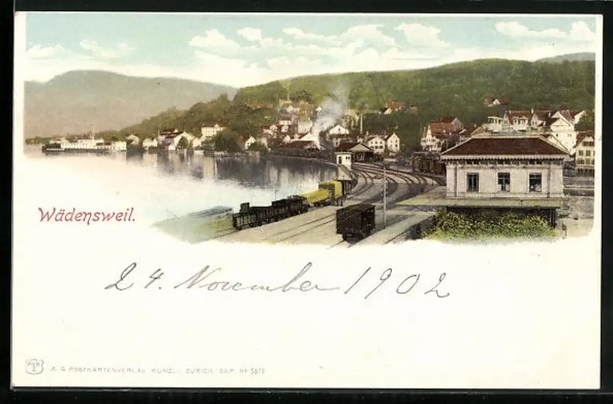 AK Wädensweil, Ortsansicht mit Bahnhof