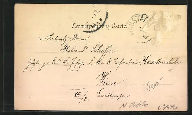 alte Ansichtskarte, gelaufen, Briefmarke entfernt, rückseitig Oberflächenschaden, guter Zustand