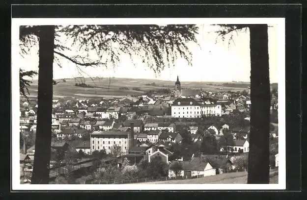 AK Wagstadt, Ortsansicht von einer Anhöhe aus