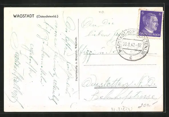 AK Wagstadt im Sudetenland, Generalansicht der Stadt