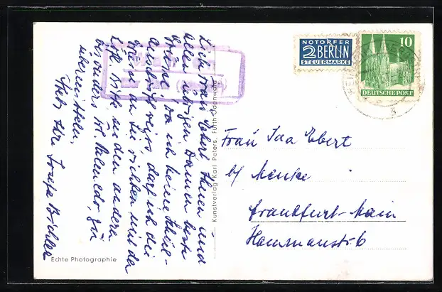 alte Ansichtskarte, gelaufen 1951, guter Zustand