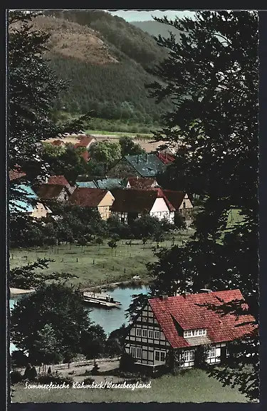 AK Wahmbeck / Weser, Ortsansicht mit Gewässer aus der Vogelschau
