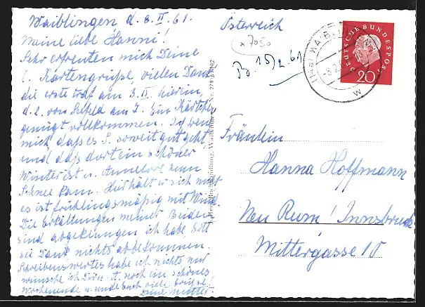 alte Ansichtskarte, gelaufen 1961, guter Zustand