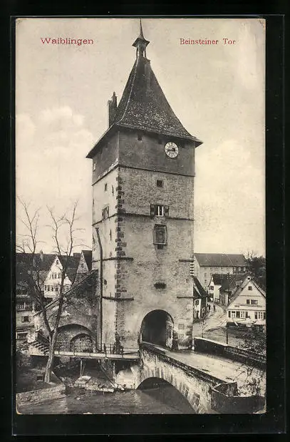 AK Waiblingen, Beinsteiner Tor mit Brücke