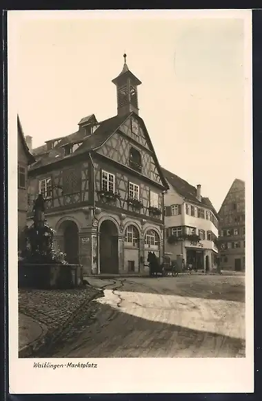 AK Waiblingen, Marktplatz mit Brunnen