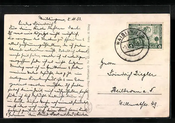 alte Ansichtskarte, gelaufen 1933, Bugspuren Ecken li., guter Zustand