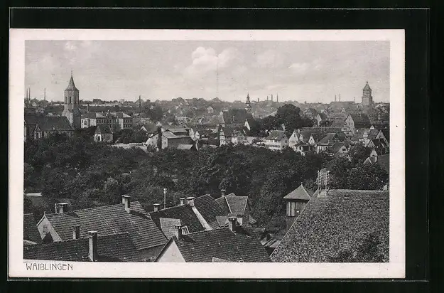 AK Waiblingen, Ortsansicht aus der Vogelschau