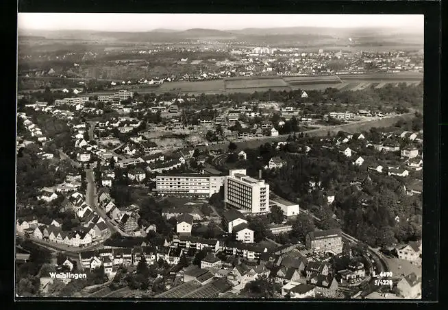 AK Waiblingen, Ortsansicht aus der Vogelschau