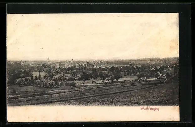 AK Waiblingen, Ortsansicht mit Kirchturm