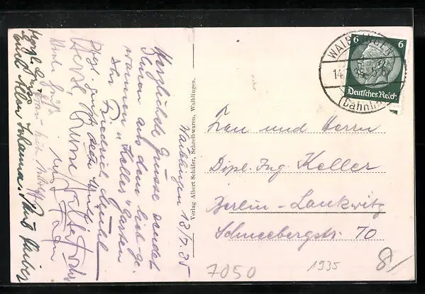 alte Ansichtskarte, gelaufen 1935, Einriss, Bugspur oben Mitte, guter Zustand