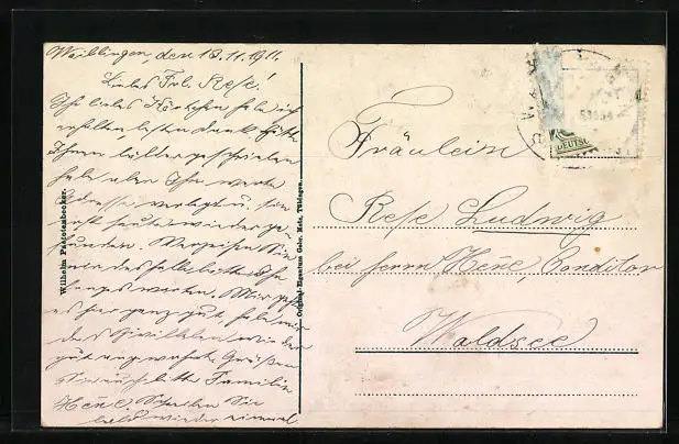 gelaufen 1911, Briefmarke entfernt, rückseitig Klebe- und Papierreste, guter Zustand