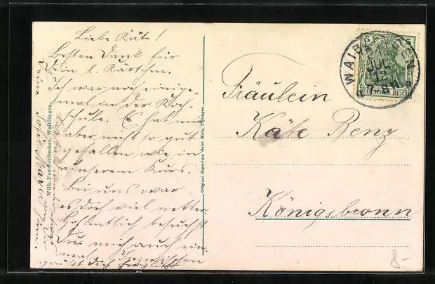 alte Ansichtskarte, gelaufen 1912, Stempelspur, guter Zustand
