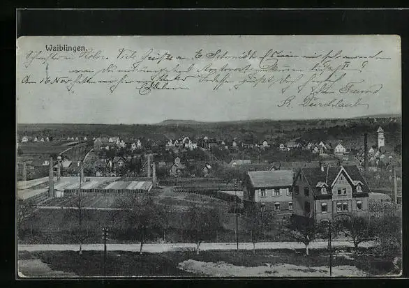 AK Waiblingen, Totalansicht aus der Vogelschau