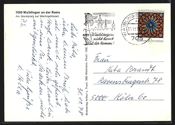 AK Waiblingen an der Rems, Am Marktplatz zur Weihnachtszeit