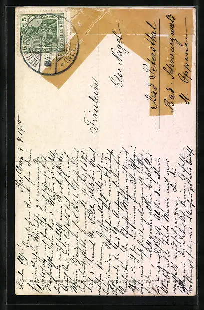 gelaufen 1910, Eckknicke oben und unten, guter Zustand