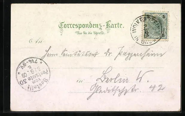 gelaufen 1903, Eckknicke oben, Stempelspur, guter Zustand