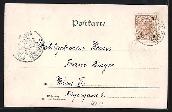 alte Ansichtskarte, gelaufen 1899, guter Zustand