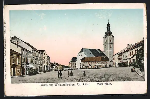 AK Waizenkirchen /Ob.-Oest., Marktplatz mit Kirche