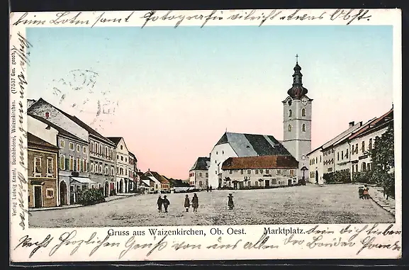 AK Waizenkirchen /Ob.-Oest., Marktplatz mit Kirche